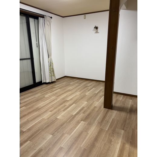 マンション床のみ原状回復することにあったリビングです。 2重床になっていたマンションフローリングの上層のみ撤去した後、ダイケンのイエリアオトユカフロアL45を直張しました。