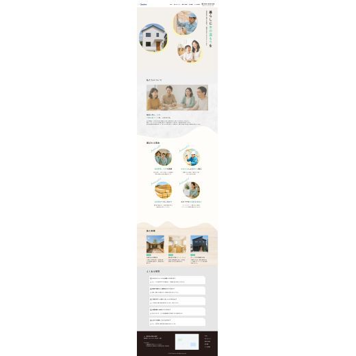 工務店を想定した制作事例です。 暖色系の色合いと曲線を組み込んだデザインで、暖かい印象を演出しています。