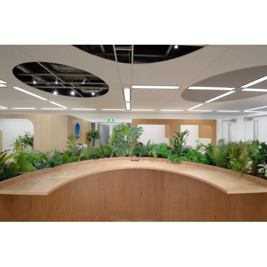 神奈川県横浜市における、オフィス移転に伴う内装計画である。「家族のように気兼ねなく過ごせる、あたたかみのあるオフィスにしたい」というクライアントの想いを受け、空間の中心にキッチンを備えたオープンスペ …