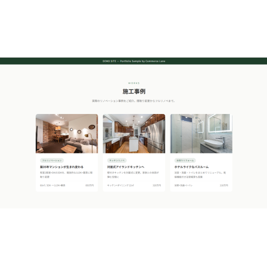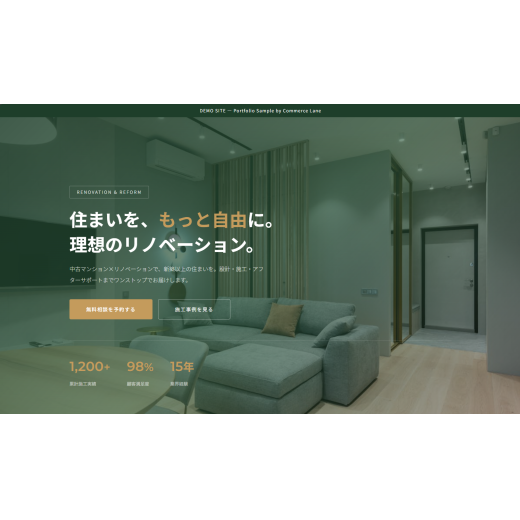 リフォーム・リノベーション業界を想定したLP型デモサイト。