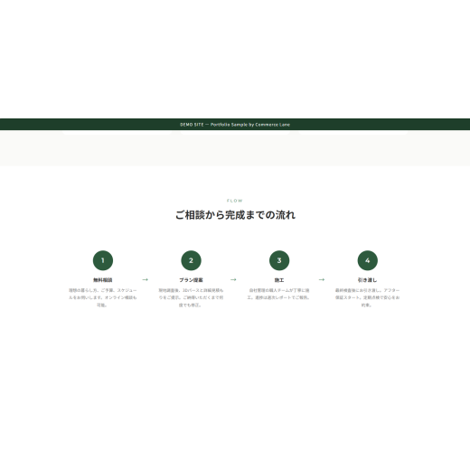 このデモサイトでは、数値による信頼構築・事例で具体イメージ・明快な料金提示・CTAという流れを意識して構成しました。実案件でも同様に、お客様ごとの意思決定プロセスに合わせた導線設計を行います。