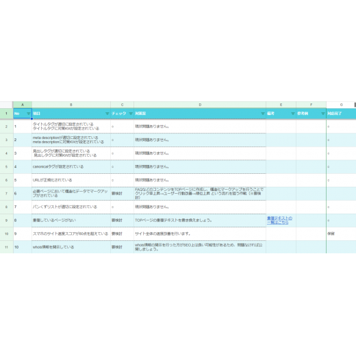 サイト内部の要素を整備する施策。検索エンジンから適切な評価を受けられるような環境づくり内部チェックリスト作成、重複テキストチェック、低品質コンテンツ改善