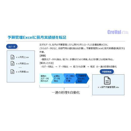 - ユーザーの予算管理グループは、毎月月初に前月実績値を予算管理Excelに転記(コピペ)する作業を行っていました。