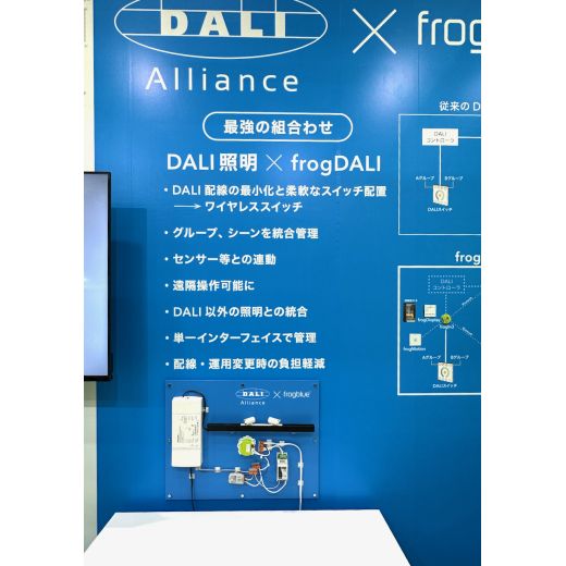 ビッグサイトの展示会のブースデザイン、設計、壁面の説明イラスト、キャッチコピー、照明計画、施工まで行いました。この製品の「照明の制御、調光」機能をブース内の照明自体でデモンストレーションに使用しています。
