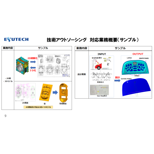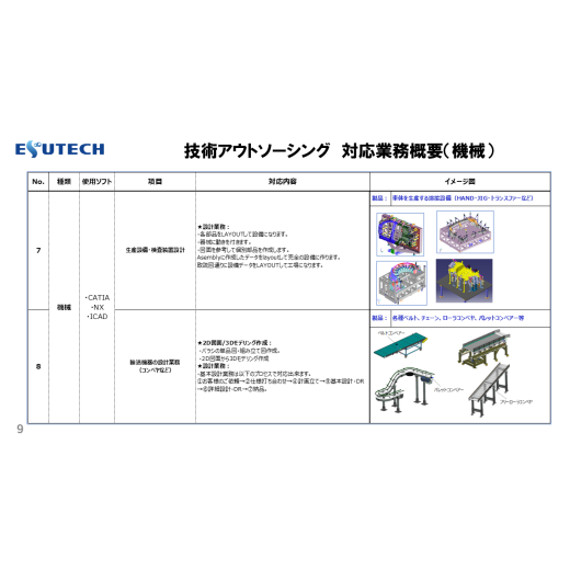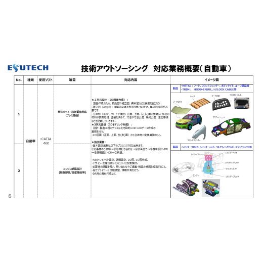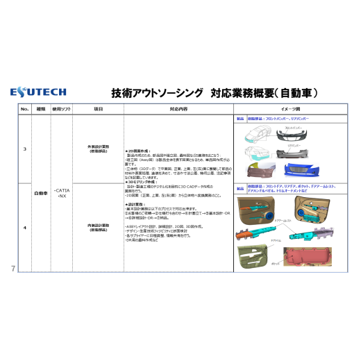 自動車Body、樹脂部品の請負設計実績。食品工場設備設計実績あり。