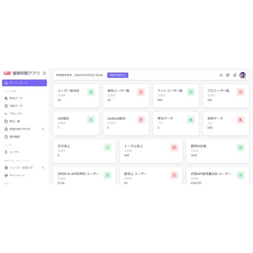 また、管理者が更新可能なCMS(ユーザー管理、ニュース・お知らせ、法令等データ管理)を整備し、将来の教材・領域追加や運用改善を継続できる拡張性を確保しています。