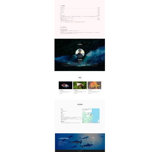 クライアント様が水中で撮影されたお写真を通じて、ダイビングの魅了が伝わるようデザイン、設計しました。 サービス内容の問い合わせに時間が取られないよう、サービス内容、料金をわかりやすくデザインし、申し …