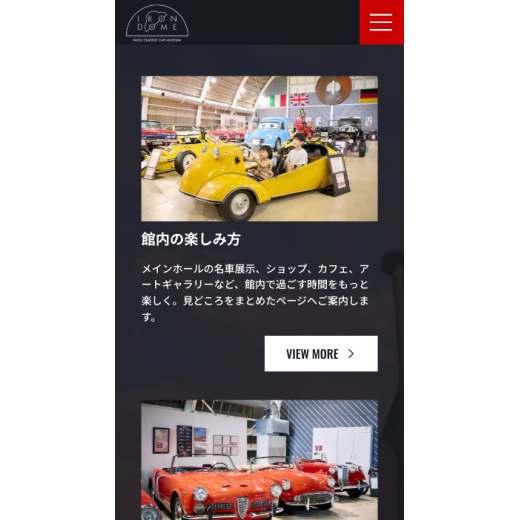 —— 世界中の名車・ビンテージカーを展示する博物館の公式サイトを制作。展示魅力を視覚的に伝える導線設計と情報発信基盤を構築しました。- 業種