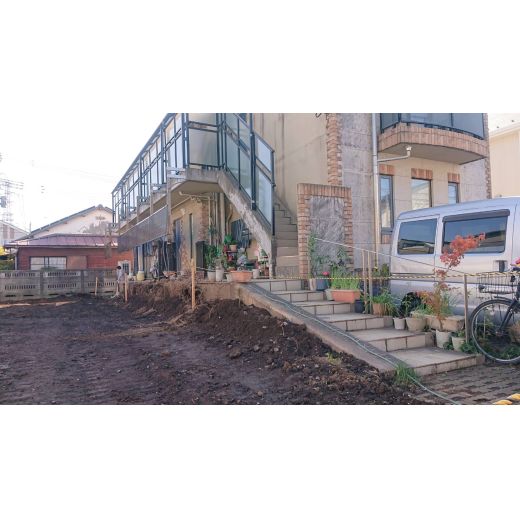 駐車場工事(砕石) ・車止め設置(単管パイプ) ・車室設置(ロープ)