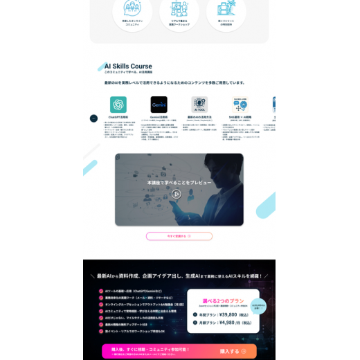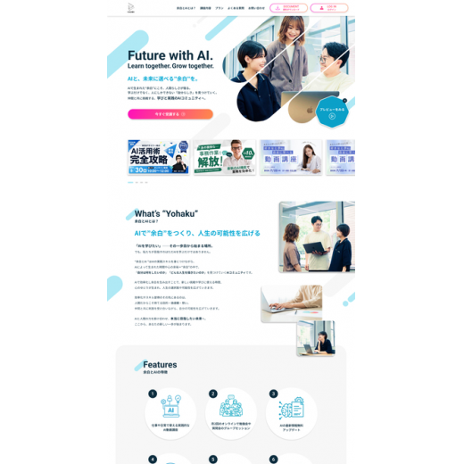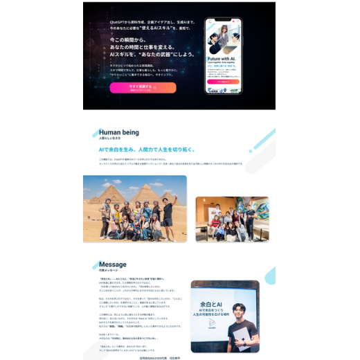 AIや未来を感じさせるグラデーションや、学習コミュニティの温かみやワクワクを表現するようなデザインを心がけました。