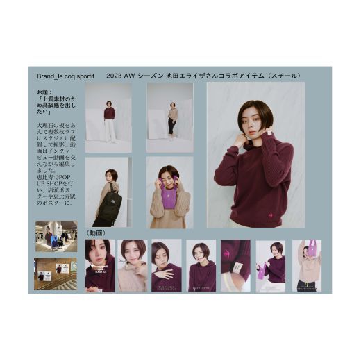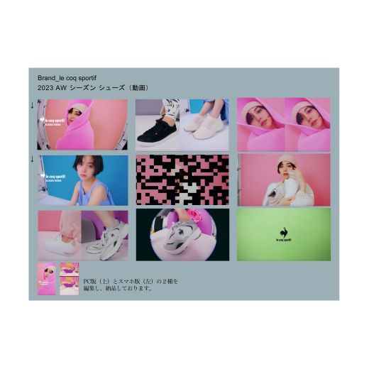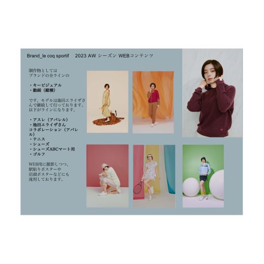 制作した写真と動画に使用されたのは、ブランドHP、シーズンLP、ECサイト、youtubeの広告、恵比寿駅の駅貼りポスター、ABCマートのポスター・動画など