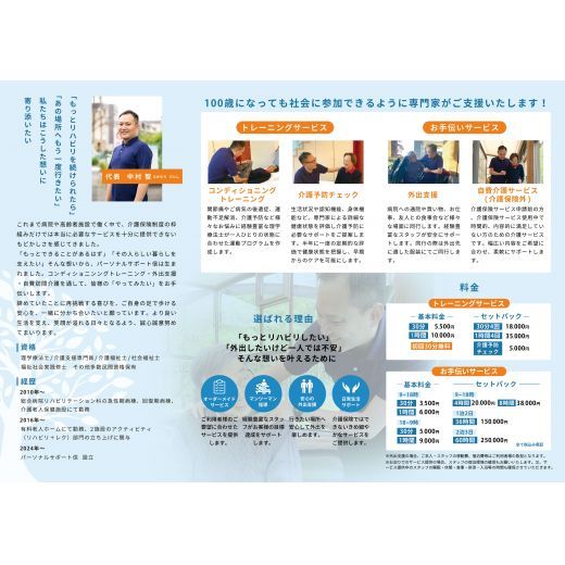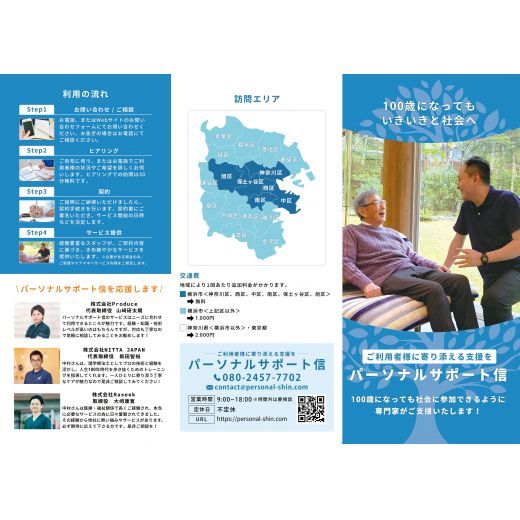 - サービス詳細を掲載した三つ折りパンフレットです。