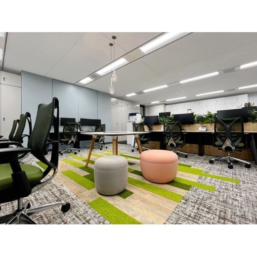 フリーアドレス化にあわせて付近の内装もリニューアルを行っており、明るく印象的な空間になっています。