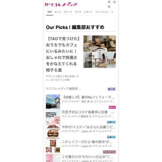「カワコレメディア」は、モデル兼記者で構成された編集部が、最新のファッショントレンドや話題のスイーツ、きれいになるためのノウハウなど、日常に取り入れやすい情報を発信しているオウンドメディアです。