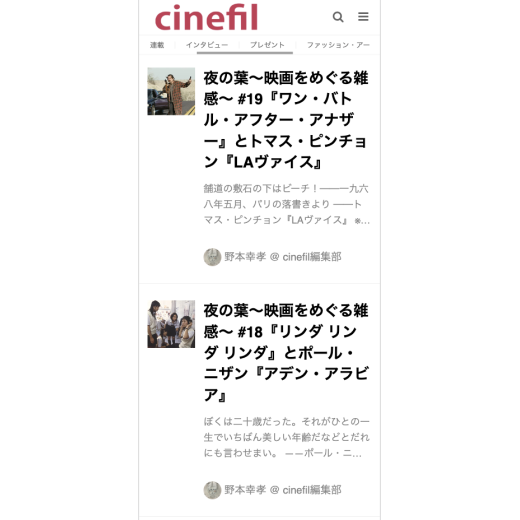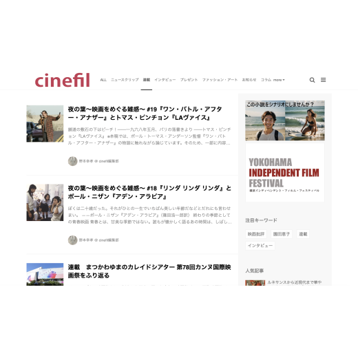 「シネフィル」は、世界の映画シーンを取り上げる、映画好きによる映画好きのためのWebマガジンです。