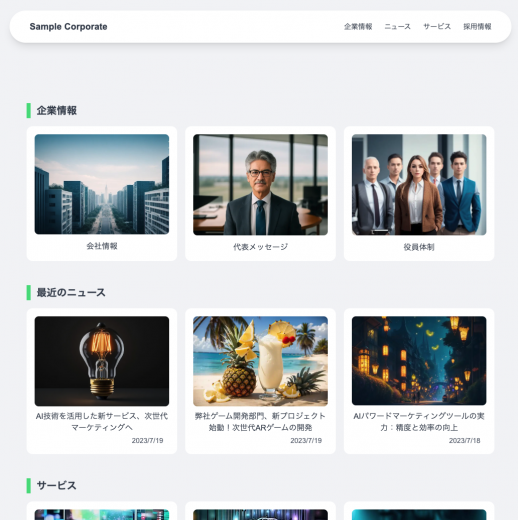 企業情報、ニュース、サービス概要、採用情報などを網羅したコーポレートサイトを構成しました。また、このWebサイトは表示速度特化で開発しています。ニュース記事に関しては、投稿専用の管理画面を用意し、ログイン機能を実装しています。そちらからニュース記事を投稿できるようにしています。