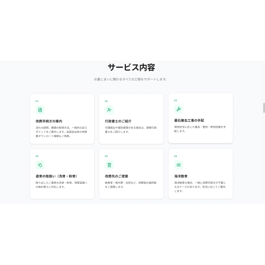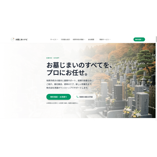 —— 検索導線を主役に、供養タイプ別の比較と地域検索を直感的に行える墓地検索ポータルを設計から実装まで一貫して制作- 業種