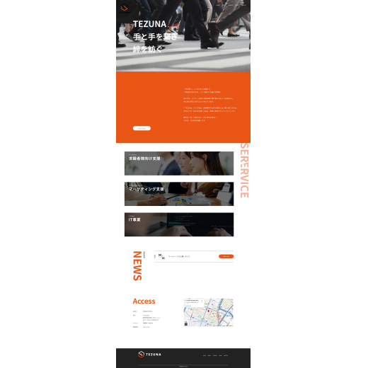 ファーストビューに「手を繋ぐことで生まれる温もり」「絆を掛け合わせることで築かれる確かな信頼」という力強いコピーを配置。温かみと信頼感を直感的に伝えています。