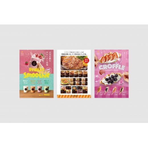 飲食店をはじめとする店舗オープンに欠かせない各種ツールのデザインを幅広く手掛けております。ロゴマークや看板のデザインはもちろん、店内を彩る内装装飾や販促物の制作まで、統一感のあるトータルデザインをご提案いたします。