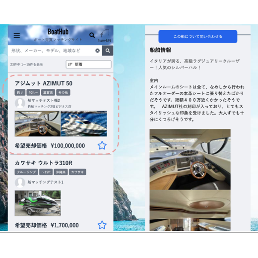 ・プレジャーボート売買のマッチングサイトを構築