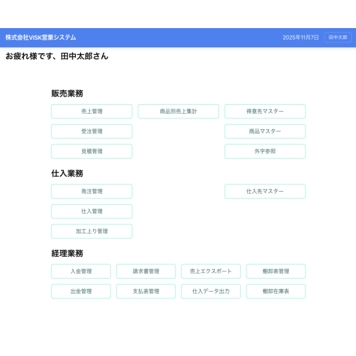 商品受注から見積もり、仕入れ管理、発注管理などの一連の作業の一元管理、また商品の在庫状況や価格なども管理しているシステムです。