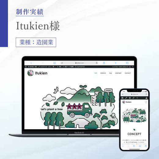 樹苑が大切にする「自然に還る空間づくり」という想いが伝わるよう、コンセプトを軸にサイト全体を設計しました。庭づくりや植栽管理、高木管理などのサービス内容を整理し、施工実績や問い合わせ導線も分かりやすく配置。やさしく落ち着いた世界観の中で、安心感と信頼感が伝わるデザインを意識しています。