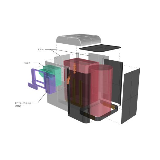 水素燃料電池自動車に水素を充填するディスペンサーのデザイン提案です。クライアントは水素ステーションを展開する大手メーカー(大陽日酸株式会社様)で、ディスペンサー単体の販売にも注力したいという依頼でした。主な要件は、コンパクトで作りやすい構成を目指しつつ、水素燃料の持つ環境に優しいクリーンなイメージを表現。また、他に類を見ない近未来的なデザインを求められました。