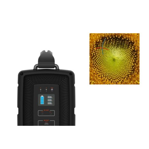 手軽に持ち運べるサイズ感のボディーは、アルミ製のしっかりとした作りになっていて、天面にはラバー製の大型の取っ手を設け、持ちやすい形としています。またカラーは、グレーのトーンでまとめているので、シンプルで飽きのこないものになっています。前面パネルにある吸気口には「フィボナッチ数列」を用いて、遊び心のあるデザインも取り入れました。
