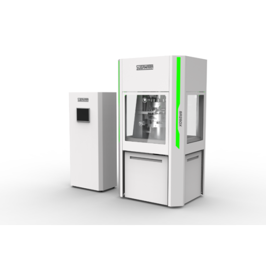 金属やセラミックなどの粉末を金型に入れ、高圧をかけることにより圧縮・成形する装置