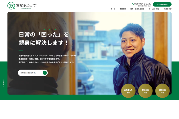 | 料金 | トップページ作成:80,000〜、下層ページ制作:20,000〜 |
